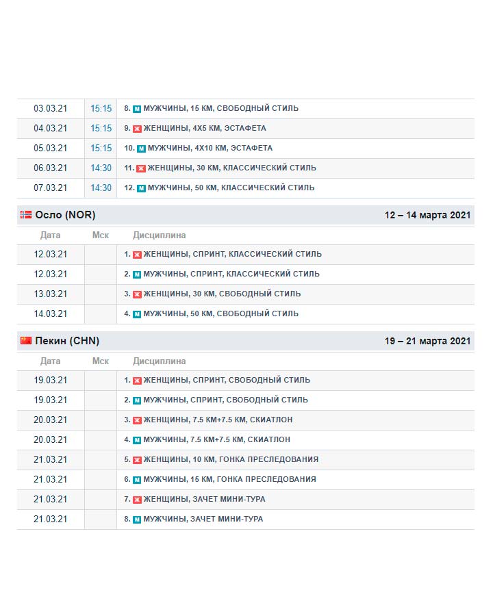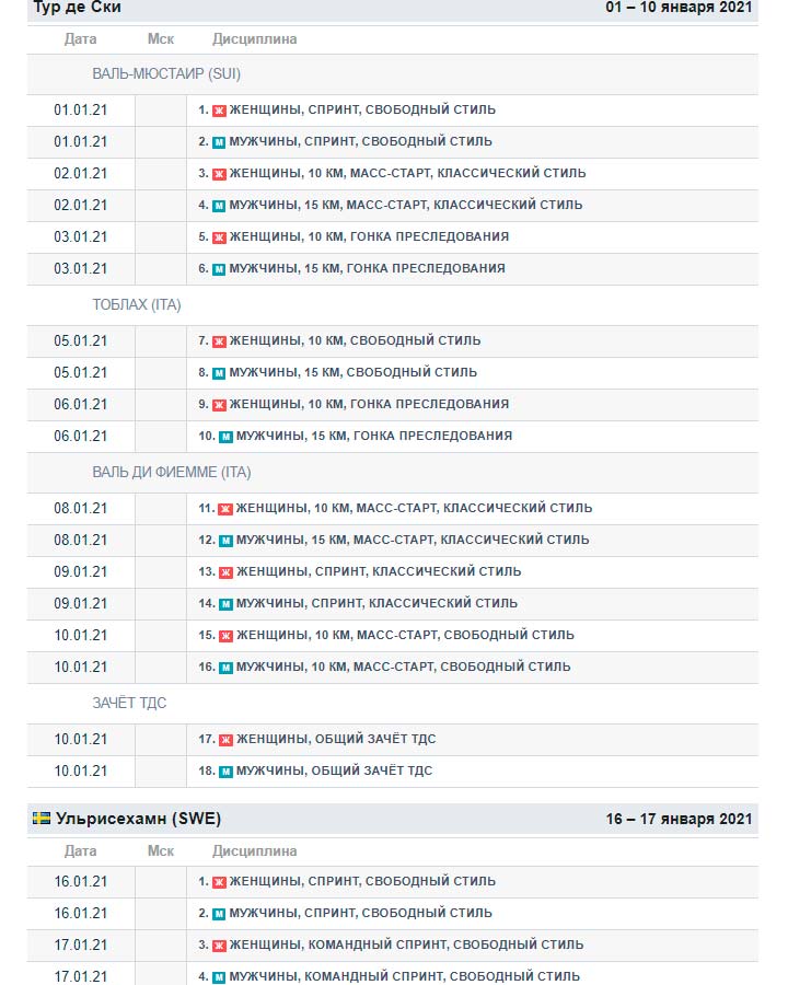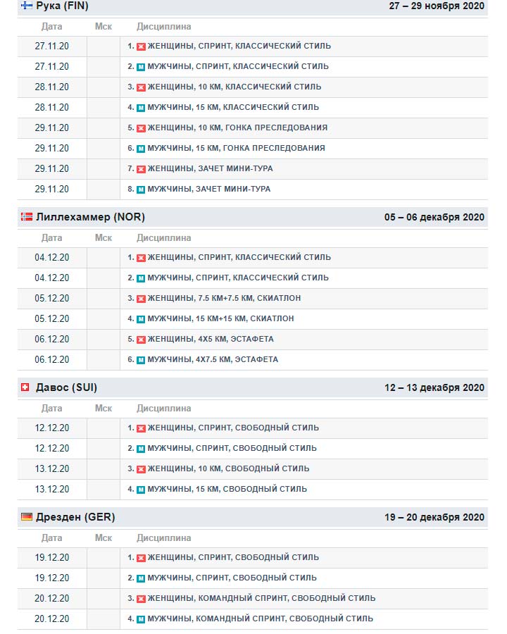 Календарь Кубка мира по лыжным гонкам 2020/2021