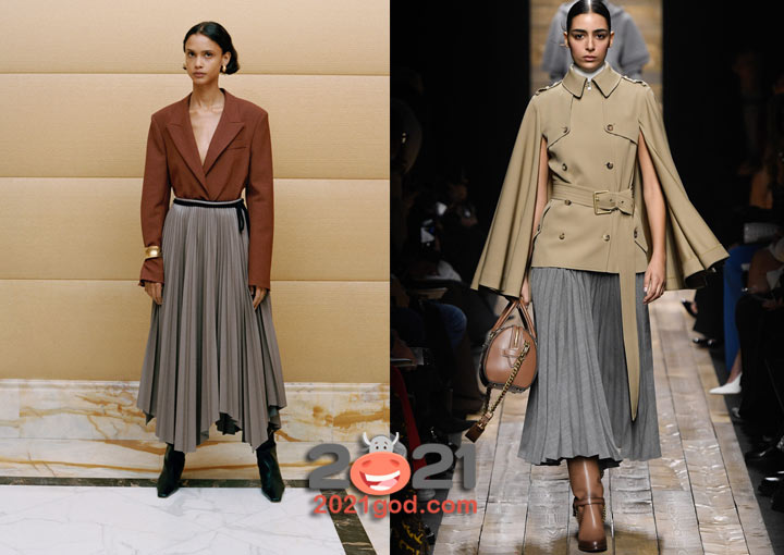 Складки не выходят из моды на протяжении многих сезонов и в коллекциях осень-зима в 2020-2021 году снова можно встретить модные юбки плиссе и гофре, а также модели с широкими складками. Достойные внимания модели представлены в луках Michael Kors, Rodarte и Ports 1961.
